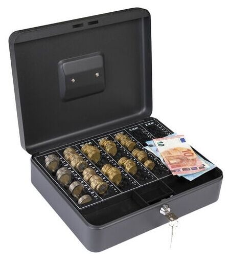 ARREGUI Elegant Cash Caisse à monnaie et billets à clé pour ranger et transporter l'argent, Caisse en acier monnayeur et compartiment pieces, Coffre fort