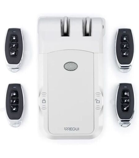 Arregui - CI30P Verrou électronique, Serrure de sécurité invisible pour porte, Vérrou à bouton et 4 télécommandes inclus, Serrure intelligente, Gris