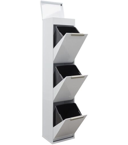 ARREGUI Ecoclas Plus Poubelle de recyclage en acier, poubelle de tri sélectif, avec plateau supérieur multifonction, blanc, 3 seaux : 3 x 17 l (51 l) CR321-E