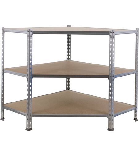 Étagère d’angle en métal sans vis avec plateaux en aggloméré, de couleur GALVA/WOOD Elle dispose de 3 étagères Comprend des plateaux en aggloméré et 5 pieds en plastique gris Les dimensions de cette étagère sont (hauteur x largeur x profondeur) : 900x900x300 mm Elle dispose de 6 poutres courtes de 300 mm chacune et de 3 poutres frontales de 700 mm chacune Pour plus de détails en termes de dimensions, voir l’image suivante (plan ci-dessus) : www.simonrack.com/fotos/MCLICKCOR33090ANTMADIM.jpg Il a une capacité de charge de 200 kg par étagère, certifié au point de flexion Ne vacille pas et n’a pas besoin d’ancrage mural Montage facile et rapide sans vis, avec système de clic Manipulation sans risque, sans arêtes de coupe Idéal pour n’importe quel coin de la maison, Produit fabriqué en Europe par Simonrack. ...