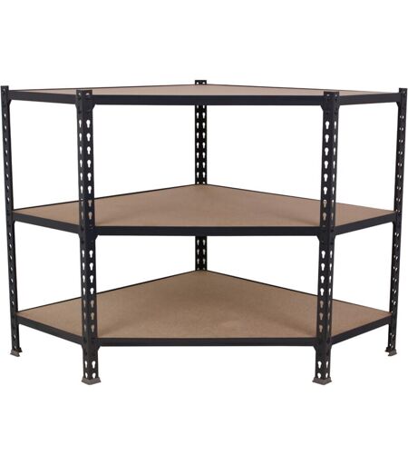Étagère d’angle en métal sans vis avec plateaux en aggloméré, couleur ANTHRACITE/BOIS Il dispose de 3 étagères Comprend des plateaux en aggloméré et 5 pieds en plastique gris Les dimensions de cette étagère sont (hauteur x largeur x profondeur) : 900x900x400 mm Elle dispose de 6 poutres courtes de 400 mm chacune et de 3 poutres avant de 710 mm chacune Pour plus de détails en termes de dimensions, voir l’image suivante (plan ci-dessus) : www.simonrack.com/fotos/MCLICKCOR34090ANTMADIM.jpg Il a une capacité de charge de 200 kg par étagère, certifié au point de flexion Ne vacille pas et n’a pas besoin d’ancrage mural Montage facile et rapide sans vis, avec système de clic Manipulation sans risque, sans arêtes de coupe Idéal pour n’importe quel coin de la maison, Produit fabriqué en Europe par Simonrack. ...