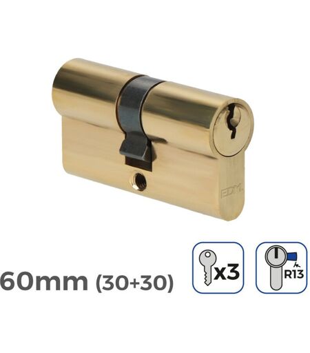 EDM Cylindre en laiton 60mm - Came courte R13 - 3 clés incluses - Sécurité dorée