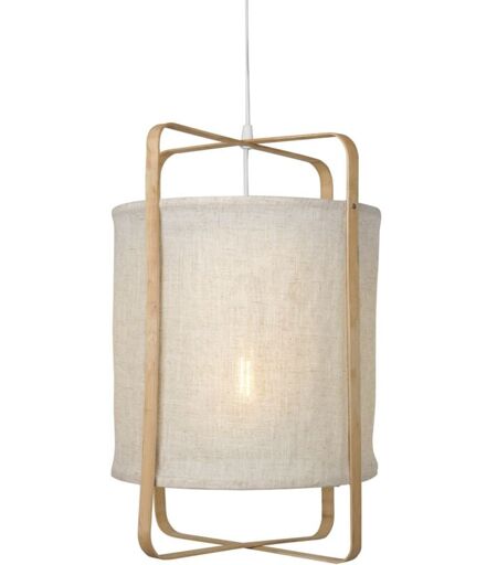 Suspension avec abat-jour en tissu de lin et armature en bambou. Câble et rosace noirs en métal noir sablé. 1,5 m de câble. 1xE27 40Wmax. Ampoule non incluse. 300x300x1460mm ...