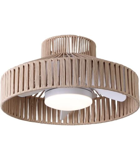 Ventilateur de plafond avec lumière WINDSOR de Sulion. Avec un diamètre de 52 cm et un large flux d'air, il est parfait pour les petites pièces jusqu'à 13 m². Son design exclusif intègre un abat-jour décoratif en cordes naturelles, imitant une suspension lumineuse. Il dispose des fonctions I Feel, brise et minuteur. La lumière LED intégrée est réglable en intensité et en température. Les nouveaux ventilateurs Sulion sont équipés du moteur DC 2.0, réduisant le bruit, améliorant le démarrage et la durabilité, tout en diminuant la consommation d'énergie grâce à de meilleures performances mécaniques et électriques. Convertible en plafonnier. Étiquette énergétique : F. ...