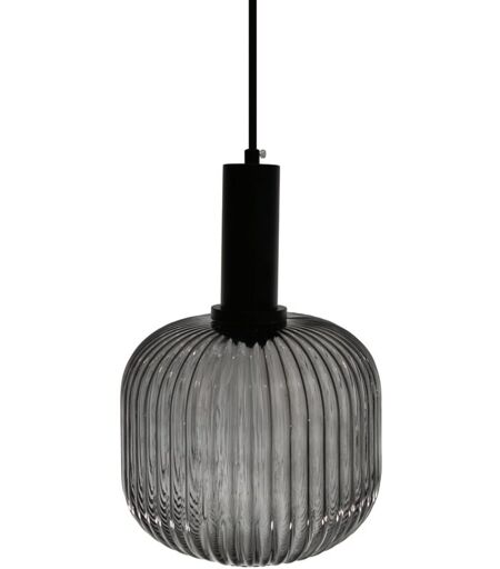 Suspension avec abat-jour en verre cannelé fumé Parfaite pour éclairer subtilement et avec élégance une zone de votre maison. Cette pièce est composée d’un abat-jour en verre noir fumé cannelé et d’une douille en finition noire sablée. Créez un coin plein de caractère et d'inspiration vintage. Hauteur réglable, câble en textile noir. Douille E27. ...