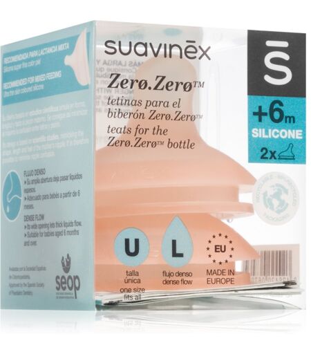 Suavinex Zero Zero Bottle Teat tétine de biberon L Dense Flow 6 m+ 2 pcs