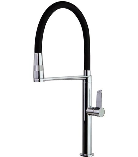 Kitchen Magnet , grifo monomando de cocina giratorio y extraíble con sistema de imanes, Acabado cromo. Grifo de fregadero monomando de grandes dimensiones, de diseño minimalista, con caño giratorio 360º, extraíble y flexible de silicona negro. Incorpora un innovador sistema de imanes, el cual le permite volver a su posición inicial, con sistema anticorrosión patentado y cromado de alta resistencia Diamond Finish ...