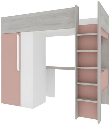Vente-unique - Lit mezzanine 90 x 200 cm avec armoire et bureau - Rose et blanc - nicolas