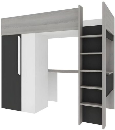 Vente-unique - Lit mezzanine 90 x 200 cm avec armoire et bureau - Anthracite et blanc - nicolas ii