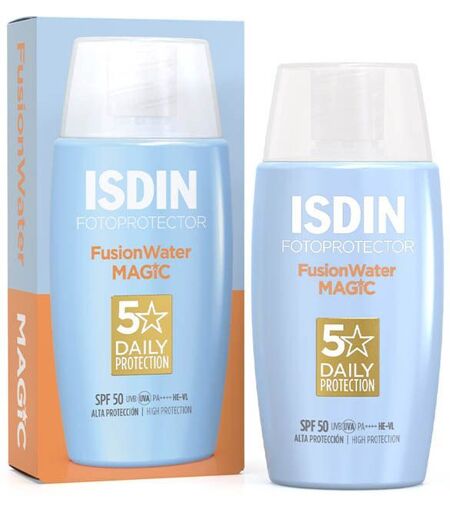 Photoprotection ultra-légère d’usage quotidien pour des activités en plein airPhotoprotection du visage de phase aqueuse à texture ultra-légère, hydratation intense et absorption immédiate qui garantit une haute protection contre les rayons UV pour profiter du soleil lors d'activités de plein air.Non comédogène. Oil free. Hypoallergénique, formulé pour minimiser le risque d'allergie.BénéficesHaute protection UVB/UVA SPF 50 testée en laboratoire et dans des conditions réelles de fort rayonnement solaireProcure une hydratation intense grâce à sa formulation à l’Acide Hyaluronique. Texture ultra-légère à absorption immédiate et sans résidu.La formule améliorée du Fusion Water, doublée en acide hyaluronique, apporte une hydratation intense jusqu’à 12 heures et diminue la perte d’eau par l’évaporation transépidermique pendant 8 heures.Sa texture ultra légère s’absorbe immédiatement et donne une délicate sensation de fraîcheur et un fini sec.Fusion Water offre une haute protection SPF50 UVB et UVA idéal pour utiliser au quotidien pendant vos activités à l’air libre.La technologie exclusive d’ISDIN permet d’appliquer le FUSION WATER sur tout le visage sans crainte d’irritation des yeux.IndicationsLe Fusion Water est adapté pour peau sèche, grasse, sensible et/ou atopique. Grâce à sa texture ultra légère et son fini sec, il est une excellente option pour un usage quotidien comme notre dernière routine de soin visage. Utiliser avant d’appliquer le maquillage.Conseils d'utilisationAppliquer généreusement sur la peau sèche ou humide, au moins une demi-heure avant l'exposition au soleil. Renouveler l'application toutes les 2 heures, sur peau sèche ou mouillée, et après avoir transpiré, nagé ou vous être essuyé Une quantité insuffisante de produit réduit l’action protectrice.Ne pas exposer les bébés et les jeunes enfants au soleil. Tenir le produit hors de portée des enfants. Ne pas réfrigérer ou congeler.CompositionAqua (Water), Octocrylene, Propanediol, Butyl Methoxydibenzoylmethane, Ethylhexyl Salicylate, Polymethyl Methacrylate, Dimethicone, Phenylbenzimidazole Sulfonic Acid, Polysilicone-15, Propylene Glycol Dicaprylate/Dicaprate, Tromethamine, Bis-Ethylhexyloxyphenol Methoxyphenyl Triazine, Silica, Dimethicone/Vinyl Dimethicone Crosspolymer, 1,2-Hexanediol, Hydroxyacetophenone, Polysorbate 60, PEG-10 Dimethicone, Sodium Hyaluronate, Tocopheryl Acetate, Xanthan Gum, Caprylyl Glycol, Parfum (Fragrance), Disodium EDTA, PEG-8, Tocopherol, Tropolone, Ascorbyl Palmitate, Ascorbic Acid, Citric Acid.ConditionnementTube de 50 ml ...