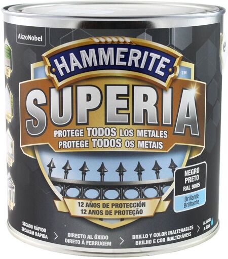 Hammerite Superia noir brillant 2.5 L.- Nouvelle génération d'émail antirouille à base d'eau - S'applique directement sur la rouille sans primaire - Protection anticorrosion avancée - Protection extrême contre les intempéries et les rayons UV - Application facile sur tous les métaux - Séchage rapide, deux couches en une journée. ...