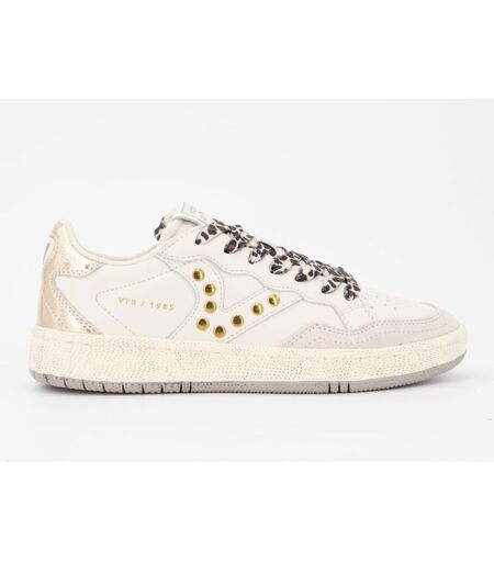 Baskets crème glitter lacets à motif léopard Femme VICTORIA
