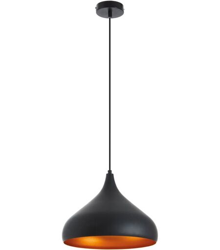 Plafonnier Kam, design moderne, présente des lignes épurées et une apparence élégante. Fabriqué en acier finition noire avec un intérieur finition cuivre, un type de matériau très résistant aux espaces intérieurs, il intègre un écran métallique en forme de larme. Il dispose d'une source lumineuse à l'intérieur avec une douille E27 compatible avec les ampoules LED d'une puissance de 60W, ampoule non incluse dans le produit. Ses dimensions s'adaptent parfaitement à tout espace intérieur, il a une hauteur de 100 cm x diamètre 30 cm. Son indice de protection est IP20, ce qui garantit une protection contre l'entrée de poussières et de particules solides. Idéal pour les installations dans les salles à manger, les salons, les séjours, les salles d'attente ...