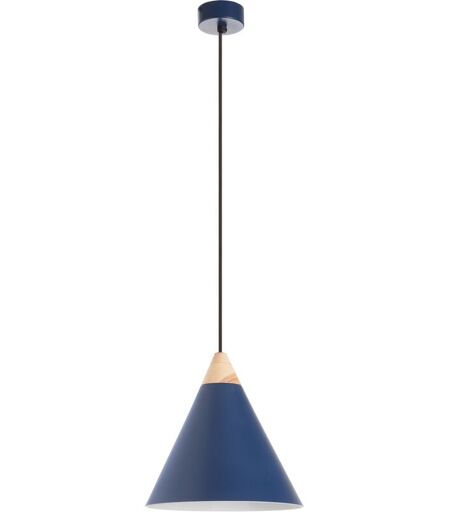Plafonnier Oda, design moderne et polyvalent, fabriqué en acier et bois de frêne, finition bleue, intégrant un abat-jour de forme conique. Il dispose d'une source lumineuse à l'intérieur, avec une douille E27 compatible avec les ampoules LED d'une puissance de 60W, ampoule non incluse dans le produit. Ses dimensions s'adaptent parfaitement à tout espace intérieur, il a une hauteur de 150 cm x diamètre de 25,5 cm. Son indice de protection est IP20, ce qui garantit une protection contre l'entrée de poussières et de particules solides. ...