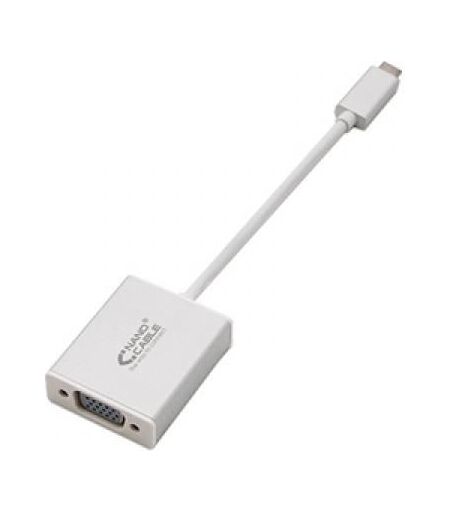 Convertisseur USB-C vers VGA, avec connecteur USB 3.1 Type-C à une extrémité et VGA femelle à l'autre. Marque NANOCABLE Modèle 10.16.4101 Caractéristiques - Permet de transmettre des signaux dune source de type C à un écran VGA. - Compatible avec Macbook Pro, Macbook avec port Thunderbolt 3, Google Chromebook. - Ne nécessite pas de logiciel ou de pilote, une solution totalement prête à l'emploi. - Prend en charge une résolution maximale en VGA 1920 x 1200 / 60Hz. - Longueur: 10 CM - Couleur argent - Règlements: RoHS - Test de fonctionnement: testé à 100%. Contenu de l'emballage: - 1 x convertisseur USB-C vers VGA, USB-C / M-VGA / H, aluminium, 10 cm Date de révision 30-08-2018 par AVN Nanocable 10.16.4101. Longueur de câble: 0,1 m, Connecteur 1: USB C, Connecteur 2: VGA (D-Sub). Couleur de câble: Blanc, Produits compatibles: Macbook Pro, Macbook, Google Chromebook. Largeur du colis: 180 mm, Profondeur du colis: 15 mm, Hauteur du colis: 210 mm. Type d'emballage: Sac en polyéthylène. Quantité par palette: 200 pièce(s), Poids du carton principal: 10 kg, Volume du carton principal: 33600 cm³ ...