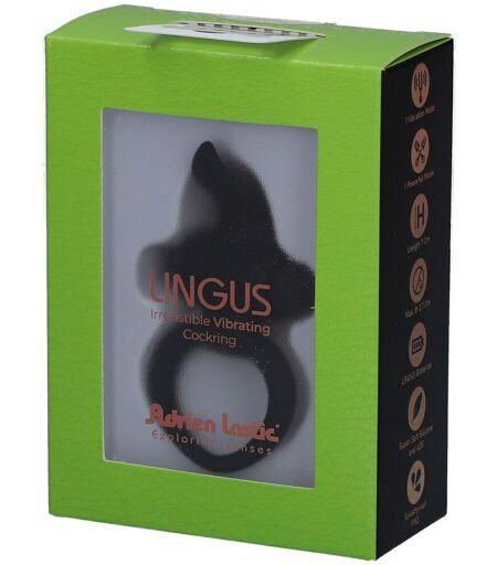 La cockring Lingus noire est conçue pour offrir une stimulation supplémentaire au porteur et à son/sa partenaire. Grâce à des vibrations puissantes et une partie stimulante en forme de langue, elle cible le clitoris ou le périnée pour intensifier le plaisir. Le silicone doux et extensible assure un port confortable.Placer l’anneau à la base du pénis. Allumer la vibration et orienter le stimulateur selon la zone à stimuler. Nettoyer après chaque utilisation.Fabriqué en silicone sûr pour le corps ; flexible, étanche et rechargeable via USB. ...