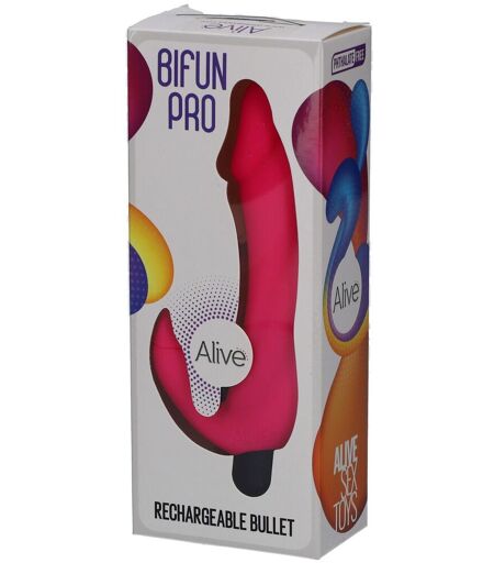 Le vibromasseur rechargeable Bifun Pro de la marque Alive est doté de deux moteurs puissants conçus pour stimuler simultanément le point G et le clitoris. Sa forme ergonomique s’adapte parfaitement à l’anatomie féminine pour un plaisir intense et profond. Il propose plusieurs modes de vibration pour varier les sensations.Appliquer un lubrifiant à base d’eau si désiré. Insérer délicatement l’extrémité interne tout en positionnant la partie externe sur le clitoris. Choisir le mode de vibration souhaité. Nettoyer après chaque utilisation.Fabriqué en silicone doux et sans danger pour le corps ; étanche ; rechargeable via câble USB inclus. ...