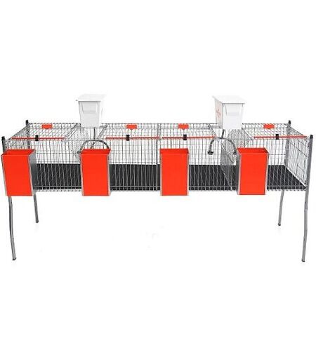 Cage id_ale pour la reproduction de lapin. Il dispose de 4 appartements de sol en plastique et de 2 nourrisseurs mixtes et mixtes š 2 meubles. Comprend 4 buveurs de bouteilles et 2 gisements. Mesures: 204 cm x 63 cm x 86 cm. Pr_sentation: 1 unit_ ...