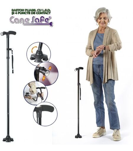 Cane Safe Canne Pliable est une canne adaptée aux personnes ayant des difficultés à se déplacer au quotidien. Cette canne est pratique et simple d'utilisation, grâce à sa forme pliable et son poids très léger, vous pourrez la ranger partout, comme dans votre sac et l'emmener partout avec vous. Elle est également munie d'une lumière que vous pourrez orienter comme vous le désirez. La canne Cane Safe vous offre un maintien exceptionnel grâce à ses 4 points d'appuis et à sa base extra-large pivotante. Même lorsque vous ne l'utilisez pas, cette canne tient toute seule. Pour votre confort, il vous est possible de régler la hauteur de la canne et une poignée douce a été ajoutée. Cane Safe est la canne qui vous procure de la sécurité et qui vous accompagnera dans chacun de vos déplacements. Le kit comprend :- 1 Cane Safe, 1 courroie pour le poignet. La lumière nécessite 4 piles lr44 (non fournies). ...