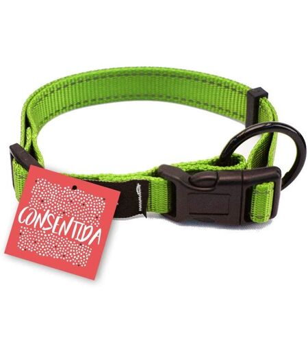 Consentida Collier De Sécurité Pour Chien Moyen T2 - Taille M 28-45 X 1 5 Cm - Uni - Vert Fluo - Tissu Lisse Et Résistant - Avec Anneau Supplémentaire