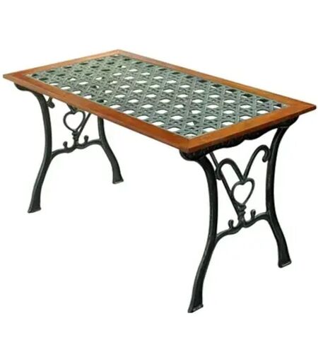 Table avec structure en fonte peinte en noir antique et bois tropical. Table robuste et résistante aux intempéries, idéale pour un usage extérieur dans le jardin ou sur la terrasse. Structure en fonte peinte en noir antique. Bois tropical. Dimensions : L119xP62xH65 cm : L119xP62xH65 cm. ...
