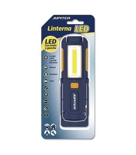 Jupiter Torche de fonctionnement led+cob 250lm - avec aimant et crochet - résistance ip44 - fonctionne avec 4 piles aa (non incluses) - couleur bleue