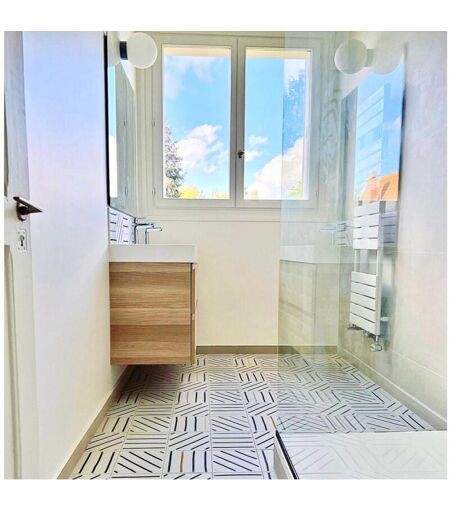 Couleurs : Blanc et multicolor Format : 20x20cm Épaisseur : 0,9cm Finition : Mat Effet : Carreau Ciment Coloré Application : sol et mur / intérieur et extérieur RECOMMANDATION : prévoir un volume de 10% ou 15% supplémentaire (pose droite ou diagonale) par rapport à votre surface pour les pertes liées aux coupes et au calepinage. La gamme Maori reprend des designs qui modernisent l'aspect carreau ciment. Sur une base grès cérame mat, la série Maori Ladakhi qui existe en 5 couleurs reproduit un motif arabesque du plus bel effet. Avec son motif géométrique contemporain et ses belles tonalités il donnera une touche de couleur et de fantaisie à votre salle de bain ou votre cuisine. ...