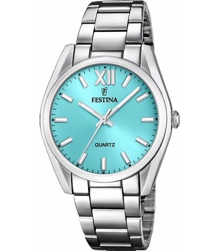 3Suisses : Prenez un nouveau tournant avec la Montre Festina F20622-D mixte. Elle se compose d'un boîtier de forme ronde conçu en acier inoxydable argenté. Ce dernier mesure 37 mm de diamètre, dimension offrant un confort de lecture indéniable. La couleur bleu ciel du cadran et sa finition soleillée donneront davantage de clarté et d'élégance à votre poignet. Lumineuse et moderne, le sublime bracelet argenté est conçu en acier inoxydable. Type: Montre Marque: Festina Genre: Homme, Femme Styles: Classique Age: Adulte Couleur du bracelet: Argent Mouvement: Quartz Fonctionnalités: Dateur Matière Bracelet: Acier Conditionnement: Ecrin de la marque Garantie: 2 Ans Type de garantie: Fabricant Affichage: Analogique Etanchéité: 50 m (5 ATM) Matière Boitier: Acier Forme de Boitier: Rond Couleur du cadran: Vert Verre: Minéral Type Fermeture: Boucle déployante Diamètre Boitier: 37 mm ...