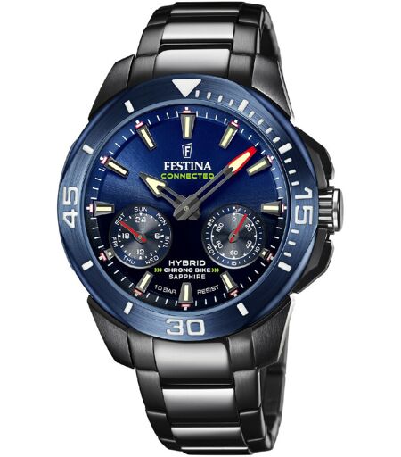 3Suisses : La montre Festina F20647/1 pour homme est une véritable ?uvre d'art en acier inoxydable 316L et en verre saphir. De plus, la marque Festina est mondialement reconnue pour sa capacité à combiner élégance et fonctionnalité dans chacun de ses designs. Son innovation technologique constante et son excellent rapport qualité-prix en font un choix idéal pour ceux qui recherchent une montre de haute qualité et au style raffiné. Avec la Festina F20647/1, vous pourrez arborer un accessoire sophistiqué et durable qui vous accompagnera dans toutes vos aventures. N'attendez plus pour l'acquérir et profiter de l'excellence de Festina.Les montres Festina sont connues pour leur mélange parfait d'élégance et de fonctionnalité, et ce modèle ne fait pas exception. Avec des designs distingués, une innovation technologique constante et un excellent rapport qualité-prix, Festina est le choix parfait pour ceux qui recherchent le meilleur en matière de montres haut de gammeConnectivité intelligente et fonctions polyvalentes dans une seule montreVous pouvez filtrer les messages, les appels et les notifications de vos réseaux sociaux préférés. L'utilisation de ce nouvel accessoire technologique est vraiment immédiate : en appuyant simplement sur la couronne, les aiguilles affichent la date et l'heure dans un second fuseau horaire.De plus, avec les boutons, vous pouvez contrôler la musique de votre smartphone, prendre des photos, enregistrer une position géographique et localiser votre téléphone, ainsi qu'allumer les lumières de la pièce ou ouvrir la porte de la maison, et bien plus encore. Il existe quatre propositions raffinées qui associent de l'acier avec un traitement IP noir ou bleu, avec des détails en or jaune ou rose.La lunette rotative et les index luminescents font de ces montres des compagnons parfaits pour un usage quotidien. Le bracelet en caoutchouc supplémentaire avec un motif camouflage est un détail élégant qui rend cette collection encore plus désirable, car il s'adapte à chaque changement de tenue.CARACTÉRISTIQUESBOÎTEBOÎTIERAcier InoxydableÉPAISSEUR14.51 mmFORMERondeDIAMÈTRE DU BOÎTIER45.5 mmNOMBRE DE BOUTONS POUSSOIRS2CADRAN DE LA MONTRECOULEURNoirVERRESaphirNOMBRE D'AIGUILLES4BRACELETMATIÈREAcier InoxydableCOULEURNoirLARGEUR22.0 mmTYPE DE FERMOIRDouble Bouton PoussoirMOUVEMENTTAPEZHybridePRÉNOMMbt003.5-l Smart WatchTYPE DE BATTERIECr3032FONCTIONSFONCTION PRINCIPALEFonctions IntelligentesCALENDRIERNonCARACTÉRISTIQUESETANCHÉITÉ À L'EAU10 ATM Caractéristiques : Boîtier / Cadran : rond Boitier et bracelet en acier noir Lunette et cadran bleu Affichage analogique Fonctionnalités : Connectez-vous Notifications filtrées: Ne manquez jamais ce qui est important Télécommande de l'appareil photo: La photo parfaite Contrôle de la musique: Instant tunes If This Then That: Programmer des actions en fonction de vos besoins quotidiens Sport Bougez: Levez-vous Daily Hundred: Chaque pas compte Objectif d'activité: Se fixer des défis Chronomètre: A vos... ...