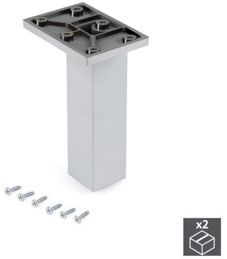 Emuca Lot de 2 pieds pour meubles Smartfeet, central, réglable 140-150mm, Plastique, Chromé - talla