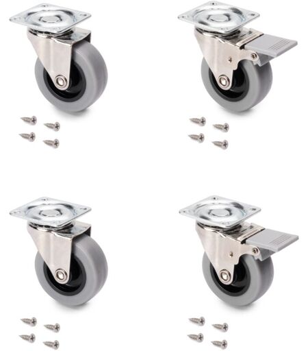 Emuca - Lot de 4 roulettes Slip avec plétine de montage, diamètre 50mm, Acier et Plastique, Gris Plastique