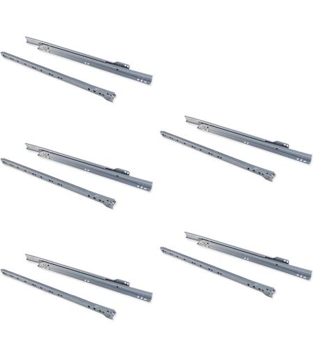 Emuca Lot de 5 jeux de coulisses a roulettes pour tiroir T30, drop lock, longueur 800mm, sortie partielle, Acier, Gris métallique