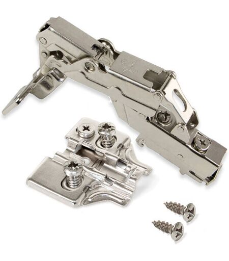 Charnières pour les portes des meubles de la cuisine, la maison, la salle de bain et le bureau et pour vos armoires. Haute qualité au meilleur prix. Leur piston amortisseur assure une fermeture en douceur de la porte. Leur principale caractéristique est l'amplitude de l'ouverture à 165º. Elles sont disponibles en version droite, coudée pour montage en applique et coudée pour montage rentrant. Leur installation requiert d'un perçage préalable de 35 mm de diamètre pour le boîtier. Fixation au panneau avec les vis fournies.Le système automatique de montage clipsable de la charnière sur l'embase facilite l'installation. Réglage rapide et pratique de la charnière et de l'embase au moyen de vis excentrique.L'embase est fixée avec Eurovis, et requiert un perçage préalable de 5 x 12 mm de diamètre, sur panneaux avec file de perçages. Charnière coudée pour montage rentrant X91. Embase à visser. Diamètre boîtier 35 mm. Ouverture 165º. Avec piston amortisseur pour fermeture douce. Système ...