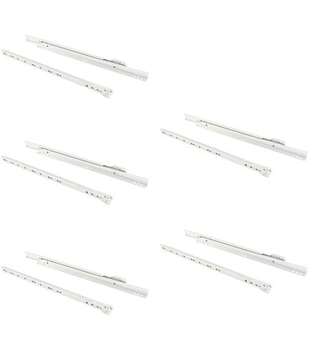 Emuca - Lot de 5 jeux de coulisses a roulettes pour tiroir T30, drop lock, longueur 250mm, coulisse a sortie partielle, Acier, Blanc