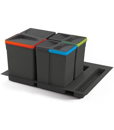 Emuca Kit poubelle de tri sélectif pour tiroir de cuisine avec socle Recycle hauteur 266mm, 1x15litres, 2x7litres, module 600mm, Plastique Gris