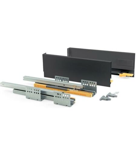 • Kit de ferrures nécessaires pour le montage dun tiroir extérieur de hauteur 138 mm et profondeur 350 mm, nincluant pas le fond, la façade ni la façade arrière. • Contient les coulisses à sortie totale, un jeu de côtés, un jeu de fixations arrière et un jeu de fixations frontales pour tiroir extérieur. • Les coulisses, à extraction totale et fermeture amortie, offrent une capacité de charge maximum de 30 kg. • Fabriquées en acier peint gris anthracite.MATÉRIEL: AcierCOMPOSANTS: 1 paire de coulisses, 1 jeu de côtés,1 jeu de fixations frontales, vis et instructions de montageDIMENSIONS: 6 x 23 x 37 cmPOIDS: 2.7100 KgMESURE: H 138 x Prof. 350 mmCOULEUR: Gris antracite ...