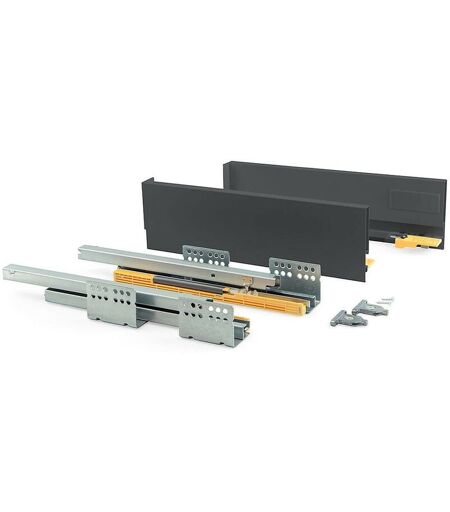 Kit de tiroir pour cuisine Concept, hauteur 105 mm, prof. 400 mm, fermeture amortie, Acier, Gris anthracite - Emuca