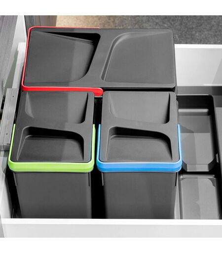 Kit de bacs de tri sélectif pour tiroirs de cuisine Recycle hauteur 216mm, 1x12litres, 2x6litres, Plastique gris anthracite - Emuca