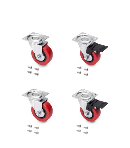 Emuca - Lot de 4 roulettes Slip 2 Red avec plétine de montage, diamètre 50mm, Acier et Plastique