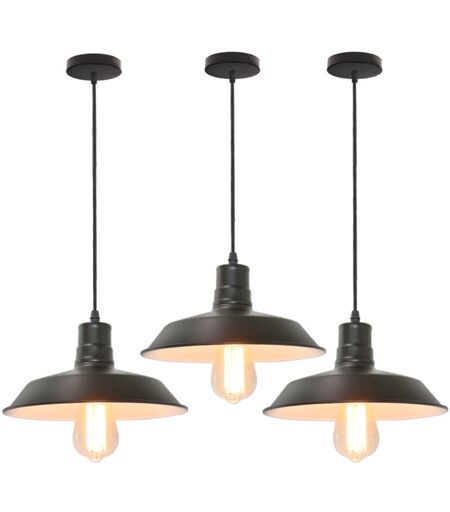 WOTTES Lustre Suspension Industriel Vintage Luminaire Plafonnier Abat-jour en Métal Lampe à Suspension E27 Ø26CM Noir et Blanc - 3Pcs