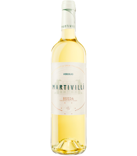 Martivillí Verdejo est un vin blanc de la Rueda produit par Angel Lorenzo Cachazo, une cave fondée en 1988 à Pozaldez (Valladolid). Le climat de cette région est de type méditerranéen mais avec une influence continentale claire. Il est caractérisé par des hivers longs et froids, des printemps courts et des étés chauds et secs. La grande différence de température entre le jour et la nuit est le secret de l'équilibre entre le sucre et l'acidité des raisins. Ce vin est un cépage Verdejo (100%) de 45 hectares de vignes plantées sur des treillis, situées à 700 et à 800 mètres au dessus du niveau de la mer. Le terrain sur lequel les vignes sont plantées est riche en calcium et en magnésium, les sols pierreux qui favorisent l'aération et l'évacuation des eaux pluviales. La vendange se fait mécaniquement à l'aide de nouvelles technologies. La récolte mécanique est effectuée la nuit pour éviter l'oxydation des moûts. ...