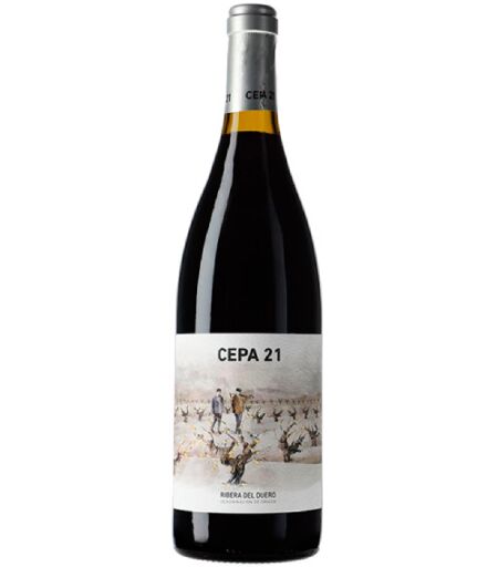 Cepa 21 est un vin que produit Bodega Cepa 21 dans l'A.O.C. Ribera del Duero. Cepa 21 est un monovariétal du cépage Tinta Fina. Le raisin provient de vignes de 25 ans d'âge, plantées à 800 mètres d'altitude dans les municipalités de Castrillo de Duero, Pesquera de Duero et Nava de Duero, dans la province de Valladolid. Ce sont des parcelles dont les sols sont composés de différentes couches de calcaire et d'argile, avec du gravier alluvial et sédimentaire. Tous les pieds proviennent d'un clone de vignobles centenaires venant de Pesquera de Duero. Le climat est continental sec, un climat très dur qui se caractérise par ses hivers très rigoureux et longs, durant lesquels sont fréquentes les gelées. Cepa 21 pratique une agriculture respectueuse de l'environnement. N'est utilisé aucun engrais minéral, seulement du fumier de mouton. N'est pas non plus utilisé d'herbicide. Le raisin passe par une table de sélection, où l'on élimine les feuilles, résidus organiques et sont jetées les grappes défectueuses. Après l'égrappage, on réalise une macération à froid. Le moût fermente, à température contrôlée, en dépôts d'acier inoxydable de 20.000 litres. Cepa 21 connait un élevage de 12 mois en barriques neuves de chêne français. ...