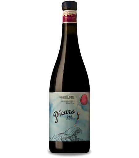 Pícaro del Águila est un vin rouge de la A.O. Ribera del Duero elaboré par Dominio del Aguila dans la ville de La Aguilera, Burgos. Dominio del Aguila est une cave crée par Jorge monzón et Isabel Rodera en 2010. Jorge commence ses études en œnologie à Bordeaux et a poursuivi sa carrière par des caves emblématiques comme Romanée-Conti et Vega Sicilia, jusqu`à arriver dans la cave de Arzuaga. Cultivant 30 hectares de vignes écologiquement, la principale variété plantée est Tempranillo avec d'autres variétés locales comme Bobal, Garnacha et Albillo sur les sols rocheux-sablo-argileux dépendant de la parcelle. Pícaro del Águila s´élabore avec un vignoble âgé de 35 à 60 ans sur des sols argileux - sableuse à une altitude de 900 mètres. La variété principale est Tempranillo avec quelque cépage de Albillo, Bobal et Garnacha. La fermentation se réalise avec tous les variétés ensemble avec une longue macération, se presse avec les peaux et se conserve en fût de chêne français. Pícaro del Águila est un vin rouge comme autrefois de Ribera de Duero, avec un bon équilibre entre des notes fruités, du bois et une acidité vibrante. ...