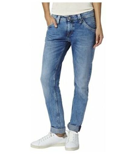 Jean Boy Friends femme Pepe Jeans - Bleu en lin Taille : 25 / Longueur : 32 female
