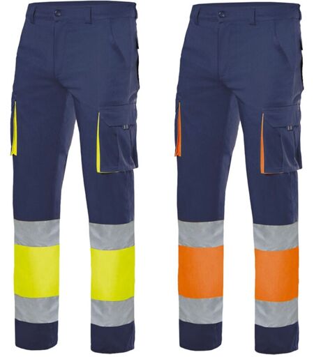 Les pantalons de travail haute visibilité Velilla 303002S sont pratiques, fonctionnels et confortables adaptés à tous ceux qui travaillent dans des situations particulières, telles que les chantiers routiers ou les environnements peu éclairés, et doivent donc être bien visibles. La structure est en tissu stretch 46% coton / 38% EME / 16% polyester de 240 gr/m² adaptée à la période la plus douce ou à ceux qui ont besoin d'un vêtement confortable et pratique, même pendant la saison la plus froide. Les Velilla 303002S sont également équipés de : 2 poches à l’italienne, 2 poches avant à soufflet à double pli central avec rabat et velcro, 2 poches arrière à rabat et velcro Fermeture centrale avec zip et bouton Bandes réfléchissantes sur les jambes Taille élastique Double couture arrière de sécurité Ils sont disponibles en bleu/orange et bleu/jaune dans les tailles de S à 3XL . ...