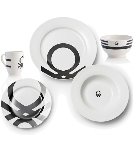 Benetton Set 26 pièces de vaisselle avec logo en noir, en faïence : 18 pièces de vaisselle (6 assiettes (assiette plate, assiette creuse et assiette à dessert)