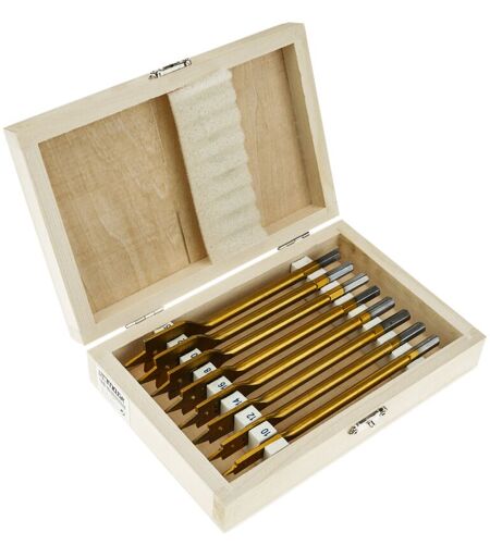 Forets plats pour le fraisage du bois. Forets plats de différentes tailles prêts à percer le bois. Boîte avec 8 embouts métalliques ultra-résistants. Présenté dans un coffret en bois avec des classificateurs pour chacun des bits. Spécifications Forets plats pour le fraisage du bois. Forets plats de différentes tailles prêts à percer le bois. Boîte avec 8 embouts métalliques ultra-résistants. Présenté dans un coffret en bois avec des classificateurs pour chacun des bits. Diamètre de perçage: 10, 12, 14, 16, 18, 20, 22 et 25 mm. ...