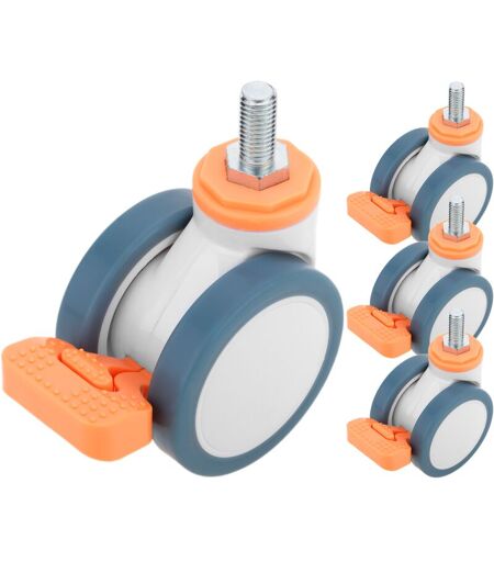 Primematik - Roulettes pivotantes pu&abs pour lit médicalisé, frein unidirectionnel et fixation à filetage, 75x56x98mm 4-pack