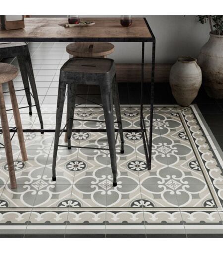 Equipe Carrelage grès cérame effet carreau de ciment CAPRICE CHATELET 20x20cm 20x20 cm Gris - Mat - boîte de 1 m2