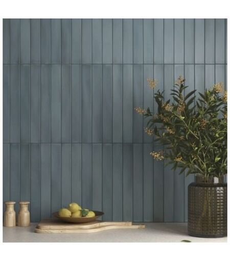 STONE BY STONE Faience Effet Zellige Bleu MASSIMO Smoke Blue 5x40cm (1m²) - Les Carreaux de Jean